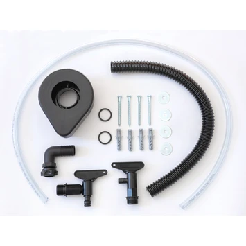 Bij deze regenton wordt een aansluitset voor op de regenton meegeleverd. Daarnaast wordt er ook een bevestigingsset meegeleverd om de regenton aan de muur te kunnen bevestigen ter versteviging. Dit is noodzakelijk, anders vervalt de garantie.