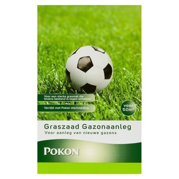 Pokon graszaad gazonaanleg 1kg bestaat uit graszaad dat speciaal geschikt is voor de aanleg en het bijzaaien van uw gazon. Het graszaad geeft snel resultaat dankzij de hoge kiemkracht. Het graszaad heeft een speciale groene coating die o.a. Pokon Startvoeding bevat. De coating voorkomt dat de zaadjes wegwaaien of wegspoelen. Dankzij de coating houdt het graszaad bovendien beter water vast. Het is verstandig het graszaad te zaaien in de lengte- en de breedterichting. Verdeel daarom het graszaad in twee porties en strooi de ene helft in de lengterichting en de andere helft in de breedterichting. Een verpakking Pokon graszaad gazonaanleg van 1kg is voldoende voor 50m2 gazon.