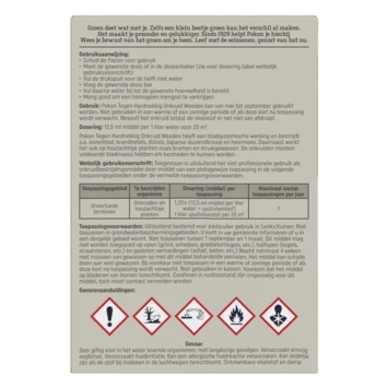 | Voorzorgsmaatregelen | GEEN braken opwekken. BIJ CONTACT MET DE OGEN: voorzichtig afspoelen met water gedurende een aantal minuten Bij het inwinnen van medisch advies, de verpakking of het etiket ter beschikking houden. NA INSLIKKEN: onmiddellijk een ANTIGIFCENTRUM/arts/… raadplegen. Buiten het bereik van kinderen houden. Verwijderd houden van warmte, hete oppervlakken, vonken, open vuur en andere ontstekingsbronnen. Niet roken. Achter slot bewaren. Beschermende handschoenen/beschermende kleding/oogbescherming/gelaatsbescherming dragen. Inhoud/verpakking afvoeren naar … |