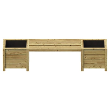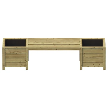Deze tuinbank heeft 2 bloembakken aan de zijdes voor een multifunctionele bank. Beide bloembakken zijn ca. 47×47 cm. De tuinbank is 94 cm lang. Het hout is geïmpregneerd en daardoor beschermd tegen weerselementen.