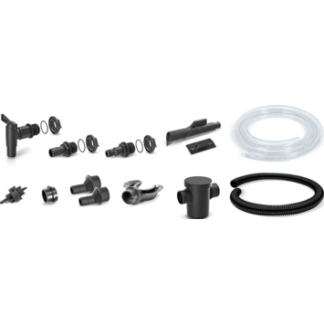Systeem voor het aan- en afvoeren van opgevangen water in de tank. De set bestaat uit 13 elementen: gatzaag; kraan; universele connectoren; tuinslang; tuit; hanger; verloopstuk; slang; extern filter; vanger. De set is verrijkt met een externe filter om water te filteren dat de tank binnenkomt. Een veelzijdige set, eenvoudig ontwerp dat zorgt voor snelle installatie.